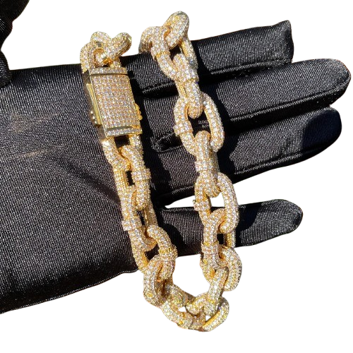 This men’s chain necklace is designed to make a statement with a bold hip-hop and rock aesthetic. Built on a copper base and finished with high-shine 24k gold plating options, the chain is fully set with AAAAA zircon stones for maximum sparkle under light. The wide 20mm link design gives it strong presence, while multiple length options allow for stacking or solo wear. Made for parties, nightlife, and standout streetwear fits, this piece delivers heavy shine without the weight of fine jewelry.